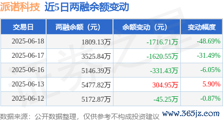 本站消息,6月18日,派诺科技(831175)融资买入56.53万元,融资偿还1773.24万元长江云配,融资净卖出1716.71万元,融资余额1809.13万元。